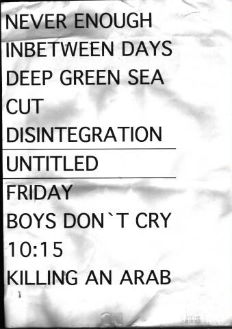 2nd encore: Friday I'm In Love, Boys Don't Cry, 10:15 Saturday Night, Killing An Arab.